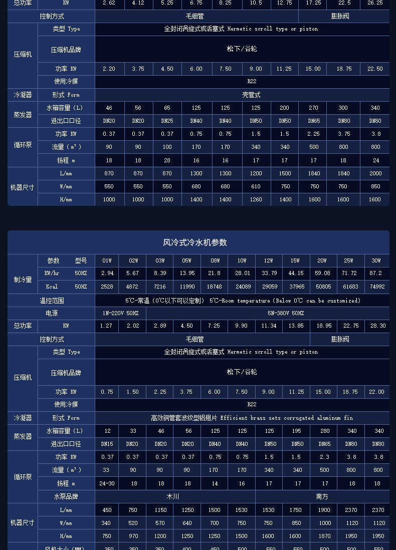 風冷式冷水式KD-5AS 風冷式冷水式KD-5AS 選用松下壓縮機 | 振動小,機器經久耐用 在制冷系統里,在區間內,壓縮機振動頻率越低,則噪音越低、對設備磨損越少,設備故障概率越低,制冷效率... 在線咨詢